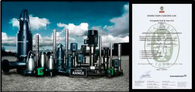 To 2018, πιστοποιούμαστε από την GRUNDFOS ως AUTHORIZED INDUSTRY PARTNER, με στόχο την καλύτερη εξυπηρέτηση της Βιομηχανίας σε θέματα μελέτης, πώλησης, επισκευών, συμβολαίων συντήρησης.